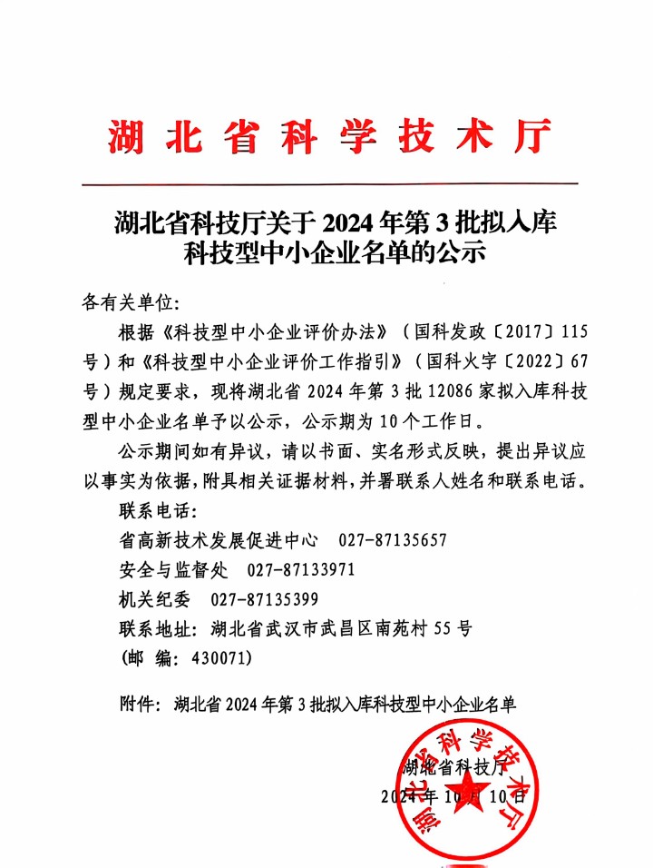 近日,湖北省科技厅公布了2024年第3批科技型中小企业入库名单,永业行旗下永业行工程项目管理有限公司位列其中。截至目前,永业行共有4家公司获评科技型中小企业。